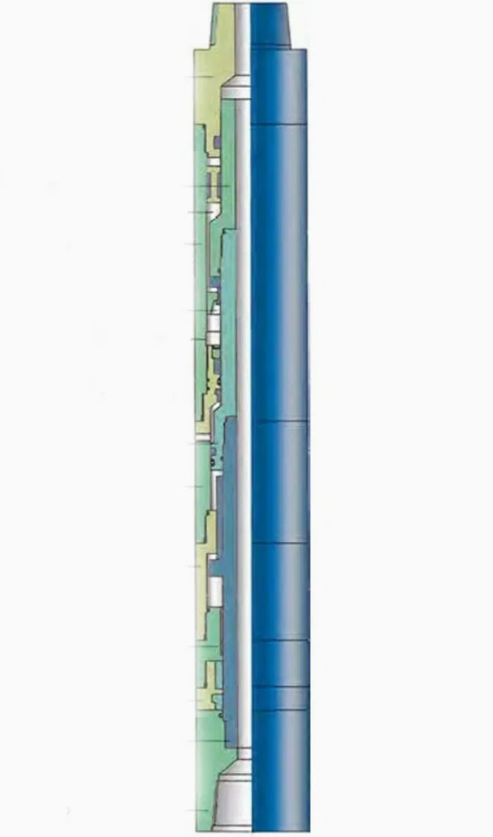 CSJ type super fishing jar effects the top jarring action is by means of hydraulic mechanism which allows taper piston to move in cylinder and stores energy by raising drill tool. When the drill tool attached on the top of super fishing jar is raised, enough time is provided for drill tool to store energy due to the damping action between taper piston and sealing body in pressure body of super fishing jar. When taper piston moves to release bore, the drill tool shall suddenly attract and produce an upward dynamic load along with the instant unloading of high hydraulic oil. The reliable impact working face is designed in the product structure to ensure that large jarring force is provided to stuck fish (drill tool ). A desire return mechanism is designed in order to make a reciprocating jarring action. In order to make a rotation for drill tool in down hole and a circulation for fluid, CSJ type of super fishing jar pass torque by means of spline and meanwhile enlarge the watercourse as far as possible to meet the tests with exception of fluid circulation and other applications.